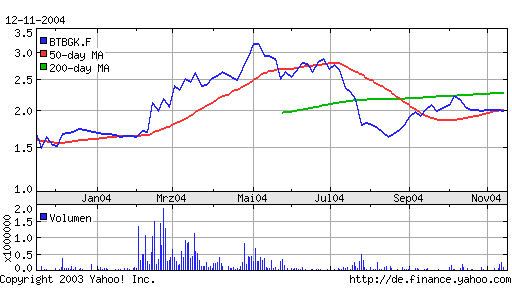 Wenn die Börsen wieder laufen, brummt auch das Geschäft der Beteiligungsgesellschafte n -; etwa der bmp AG, die in Deutschland sehr gut positioniert ist. Am Freitag teilte die bmp AG mit, dass sie ein Aktienpaket von 12,5% an der TFG Capital AG übernommen hat. Ferner werden die beiden bmp-Vorstände, Oliver Borrmann und Ralph Günther, in den Vorstand der TFG berufen. Wir rechnen mit einer weiteren Aufstockung der Anteile bis zur Komplettübernahme der TFG in absehbarer Zeit. Die Synergien wären gigantisch. Das TFG-Beteiligungsportfolio mit 29 Unternehmen und die liquiden Mittel von 22,3 Mio. Euro per 30.09.04 sind das Sahnehäubchen auf dem Kuchen. Auch die Beteiligungen im eigenen Portfolio können sich sehen lassen. Besonders hervorzuheben sind hier die Jerini AG und die YOC AG.