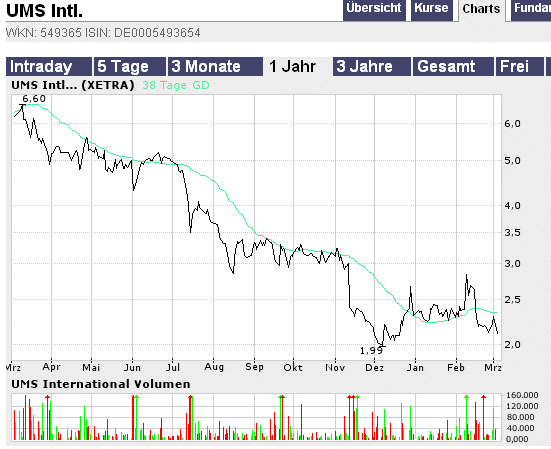 Ich bin kein Großanleger, hab mir aber in den letzten Jahren auch mit der UMS-Aktie unter anderem nicht nur meinen neuen 318er BMW so nebenbei dazuverdient.