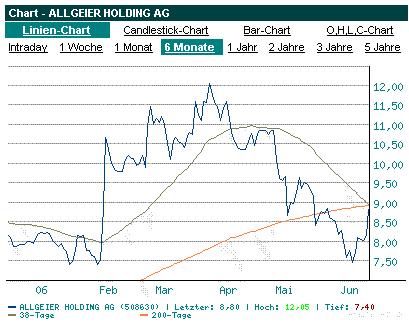 Die Allgeier Holding AG (WKN 508630) konnte heute Morgen um 5,78% auf 9,15 Euro zulegen.