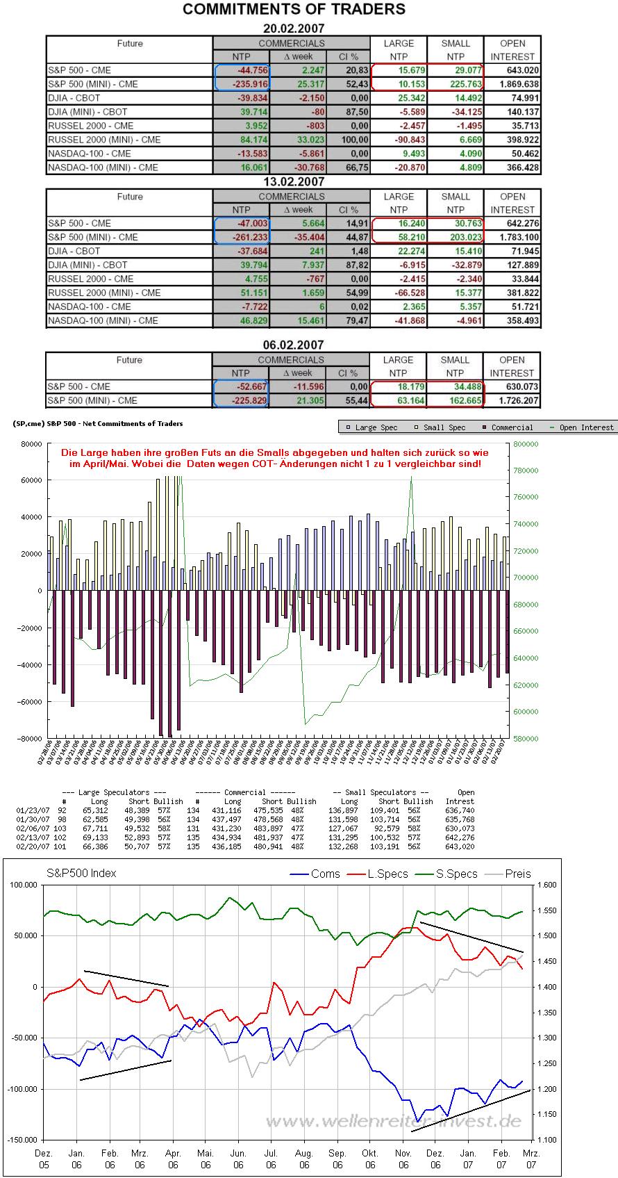 bei den Big- und MiniFuts und die Kleinspekulanten/Smalls gehen weiter fleißig