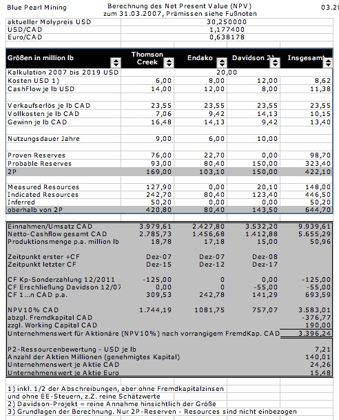 Die Bewertung von Blue Pearl Mining, finanzmathematisch gesehen