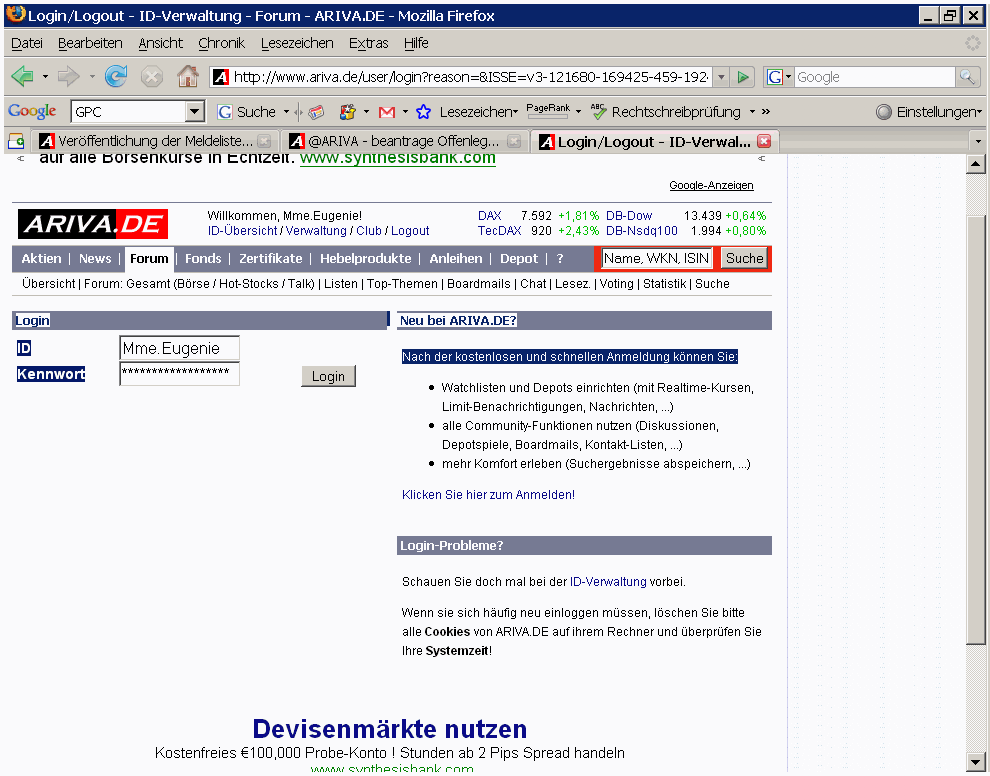 | neuester Beitrag: | 28.12.08 12:00 von: | lassmichrein |