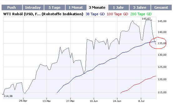 werden diese unterschritten geht es erstmal bis 120 Dollar. Die 38 Tagelinie verläuft schon fast waagerecht. Die Ölbullen haben FERTIG. UND TSCHÜSS ! :))