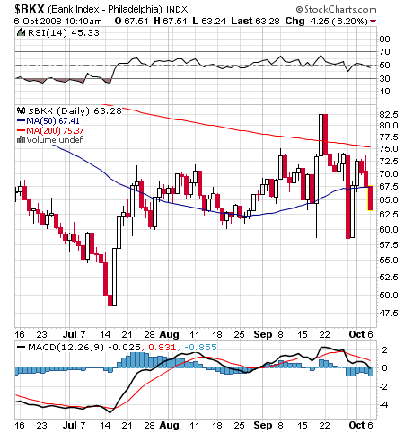 Du sagst ja immer, dass Du als Indikator für den Longeinstieg daruf wartest, dass auf schlechte NAchrichten nicht mehr negativ reagiert wird. Außerdem hast Du ja gesagt, dass die Banken nun ihren Boden erreicht haben dürften. Ich glaube eher, dass die NAchrichten bei den BAnken wieder schlechter werden. Und die Verkäufe bei den Banken gehen in die nächste Runde, worauf danch wieder Sektorroation angesagt sein wird.