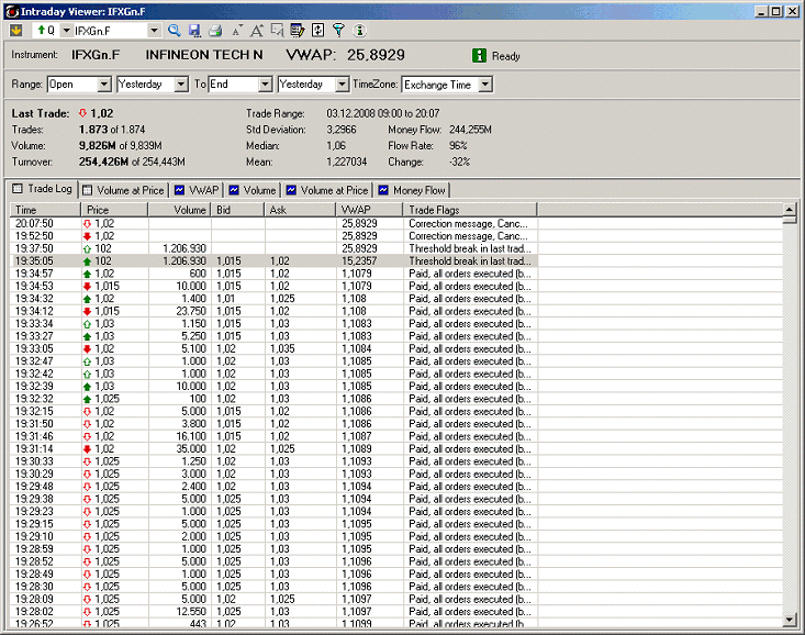 sämtliche Verkäufe in der Gattung IFX / 623100 - Infineon Technologies von gestern, dem 03.12.2008 um 19:35:04 Uhr auf der Frankfurter Wertpapierbörse, welche zum Kurs von 102,00 EUR ausgeführt wurden, werden heute von der betroffenen Börse storniert.