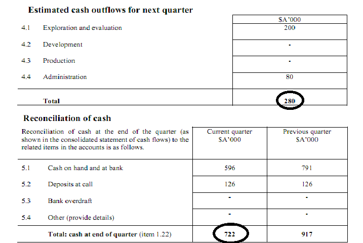 cashbestand ist wirklich nicht sonderlich. nach den bisherigen bohrergebnissen sollte es aber wohl kein problem sein, weitere investoren (auch für ein PP) zu finden. gespannt darf man wohl sein, wie schnell die arbeiten vorangetrieben werden können. navigator hat ja innerhalb von 2 jahren am bronzewing mit der produktion begonnen. echo wiederum hat das gebiet seit 2007 wenn ich nicht irre. hielt es daher zunächst für eine sehr lange vorlaufphase, bis mir auffiel, das navigator die bronzewing liegenschaft als intakte mine, nicht als explorationsgebiet übernommen hatte. so gesehen ist mit echo also doch alles im gr leinen los.