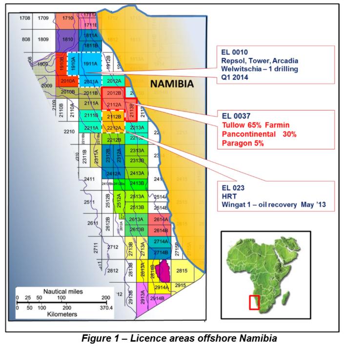 The Namibia EL 0037 consortium consists of: Tullow Kudu Limited(1) (Operator) 65%; Pancontinental Namibia (Pty) Ltd(2) 30%; Paragon Oil & Gas (Pty) Ltd(3) 5%