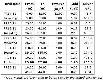 to date within the structure, including 4.0 meters grading 965 g/t Ag and 3.23 g/t Au.