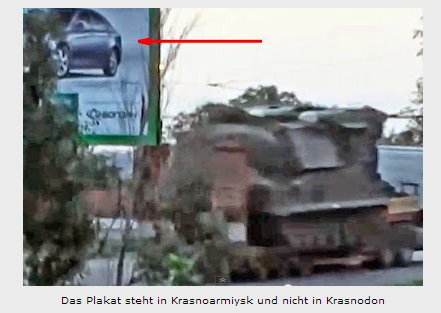 "Eines der "Beweise" die in den westlichen Medien herumgereicht werden, ist ein Video welches angeblich einen Buk-Raketeneinheit zeigt, die zurück nach Russland "geschmuggelt" wird. Damit soll Flug MH17 abgeschossen worden sein und die Separatisten wollten damit Beweise vernichten. Das behauptet jedenfalls Anton Gerashchenko, ein Berater des ukrainischen Innenminister, und er sagte, das Video wurde von Agenten des ukrainischen Geheimdienst am frühen Morgen des Freitag gemacht. Auf der Abschusseinheit sollen zwei Raketen fehlen und "es ist nicht schwer zu raten warum," sagte Gerashchenko. "Es waren exakt diese Raketen welche den 300 unschuldigen Passagieren den Tod brachte," fügte er hinzu. Nach genauer Analyse der Aufnahme stellt sich aber heraus, das Video wurde nicht in einem von den Rebellen kontrollierten Gebiet aufgenommen, sondern in einem wo die ukrainische Armee die Kontrolle hat. Der Beweis ist somit eine Fälschung."