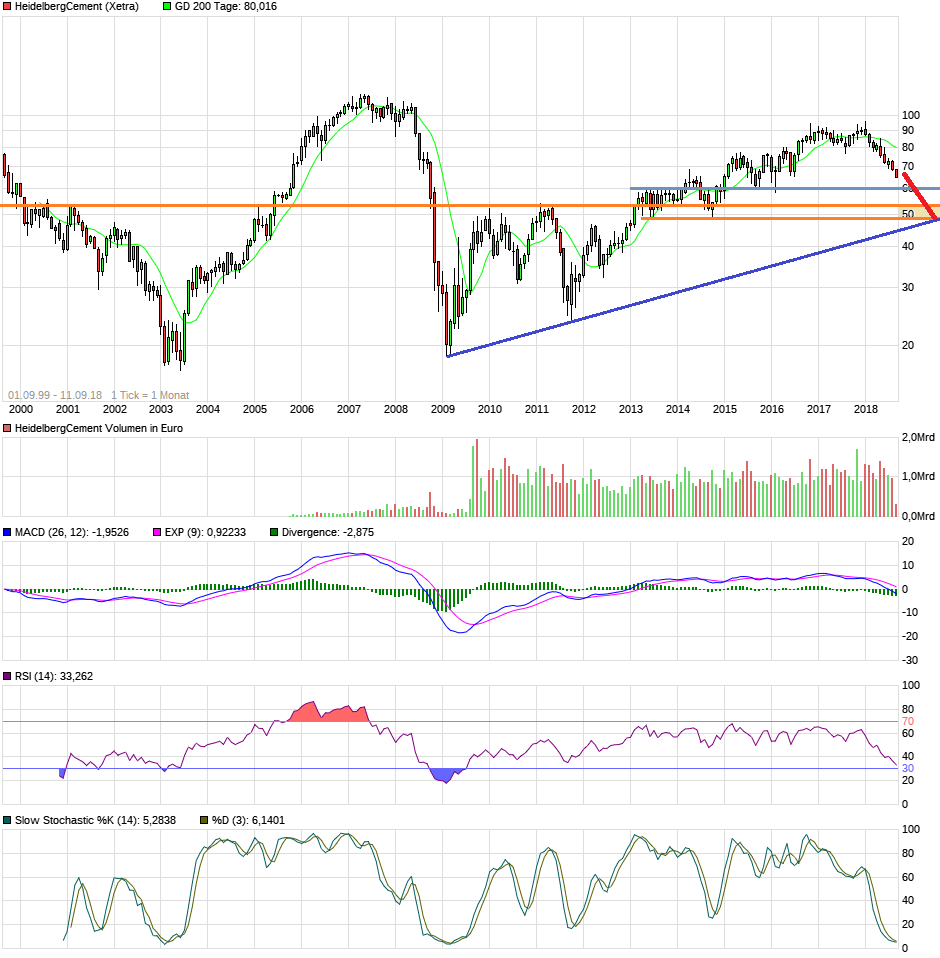 Der Kursrücksetzer führte die Aktie von etwa 96 auf grob 70 . Im Juni und August kauften nach Daten der BaFin mind. drei Vorstandsmitglieder Aktien im Gegenwert von grob 600,7 T. Bei HeidelbergCement ist für Vorstandsmitglieder grundsätzlich auch ein Eigeninvestmentvorgesehen.