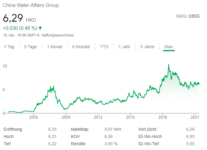 WKN: A0MQ4W / ISIN: BMG210901242China Water Affairs ab 2020