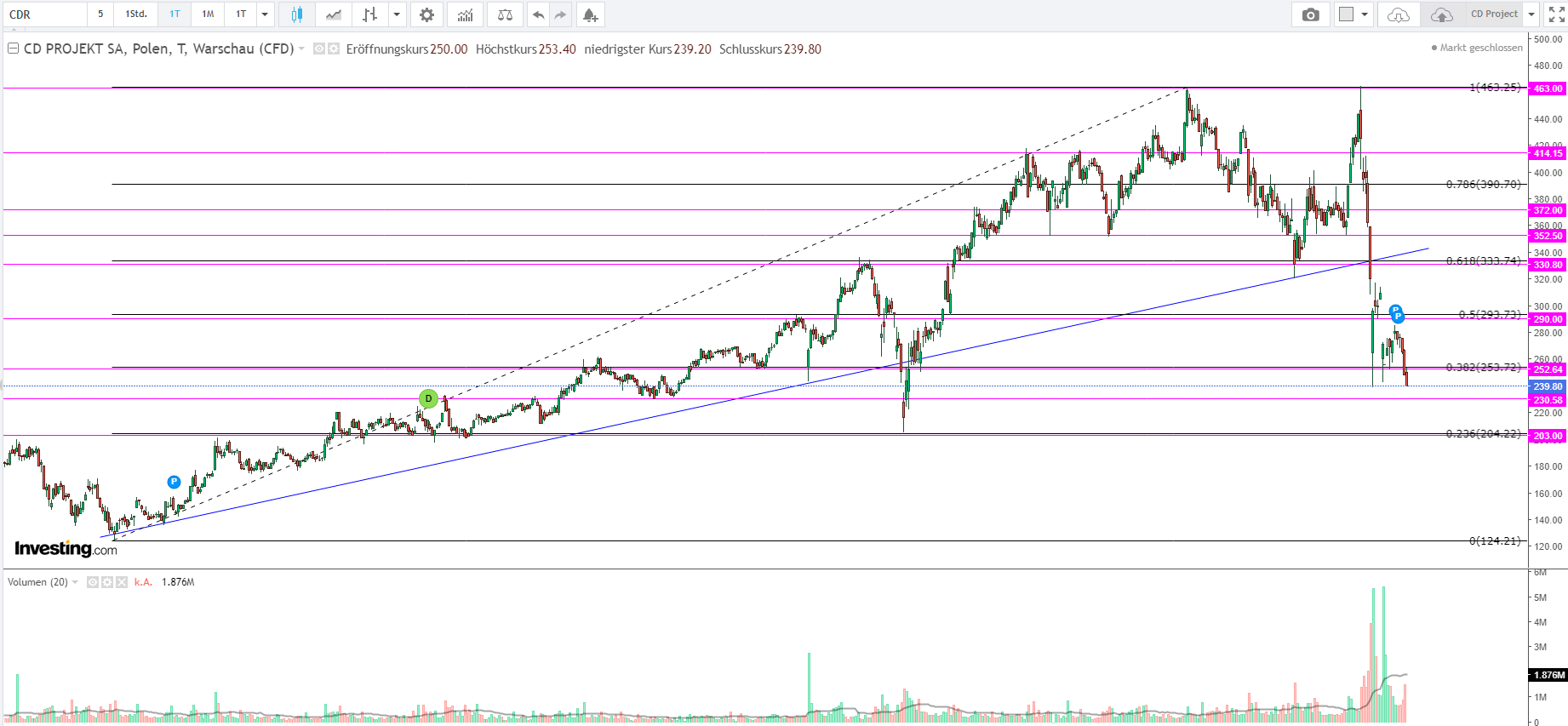 eingebrochen. Kurs stürzt weiter ab. Mal sehen woher CD die Liquidität hernehmen will um das Spiel noch zu retten