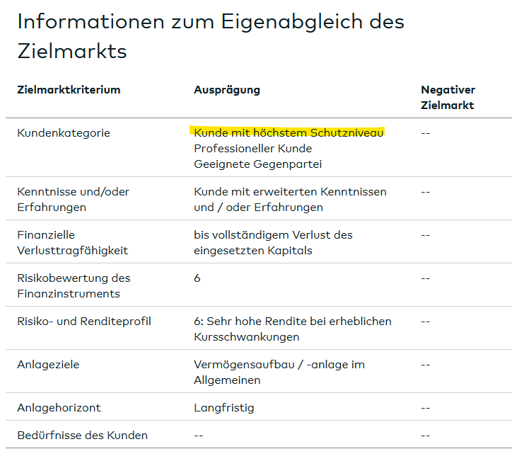 Mein maxblue Depot ist mit der (dort, für Privatkunden) höchsten Risikoklasse 7 eingestuft. Daran liegt es also auch nicht.