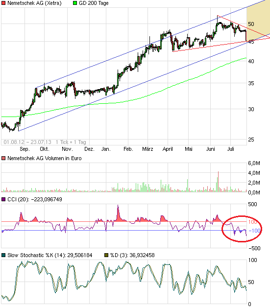 Trend scheint bei Nemetschek doch leider keine Rolle gespielt zu haben bzw. hat sich gar nicht erst ausgebeildet. Vielleicht läufts ja auf ne Seitwärtsrange 42-51 € hinaus, in der man sich seit Anfang März befindet.