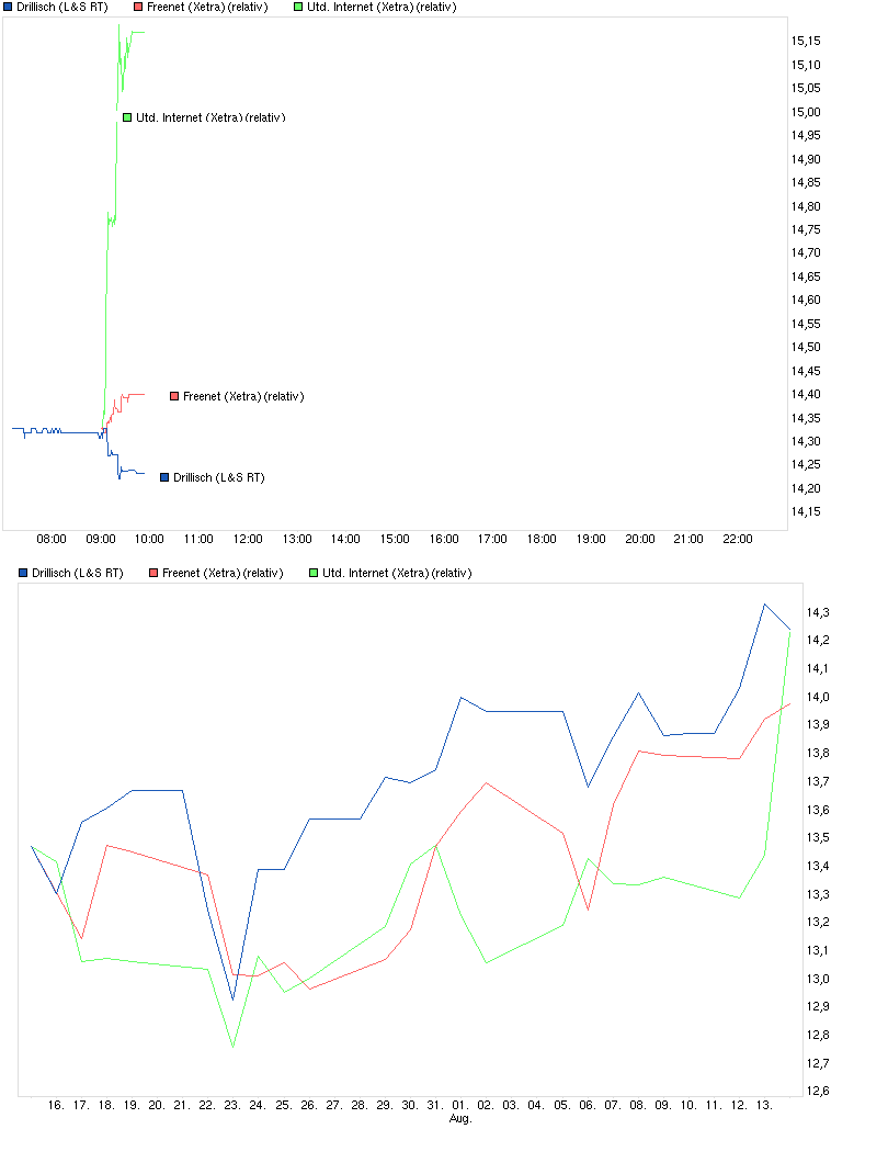 und auch FNT ist eben auf ein neues Mehrmonatshoch gelaufen. TecDax ist auch wieder einen Schritt näher an sein Allzeithoch gerückt. DRI ist aber nach dem schnellen Schritt von gestern heute bislang etwas fußlahm. Scheint als wartet man jetzt erstmal ab bis die beiden Kurs-Kumpels wieder gleichauf sind ;)