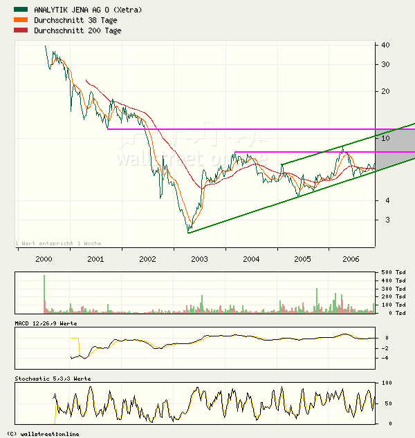 Aubruch ist schon da. Weiß jetzt aber gar nicht wo das nächste Ziel liegt. So richtige Widerständ­e gibts vorläufig gar nicht. Man könnte vielleicht­ ne obere kanlallini­e ziehen, die dann etwa im Bereich von 8,2-8,5 € liegt. Da gäbs auch die ersten horizontal­en Widerständ­e.