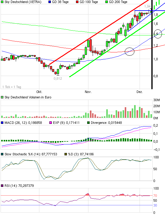 Kann gut möglich sein, dass es noch seitwärts geht, zwischen 1,82 EUR und 1,88 EUR.