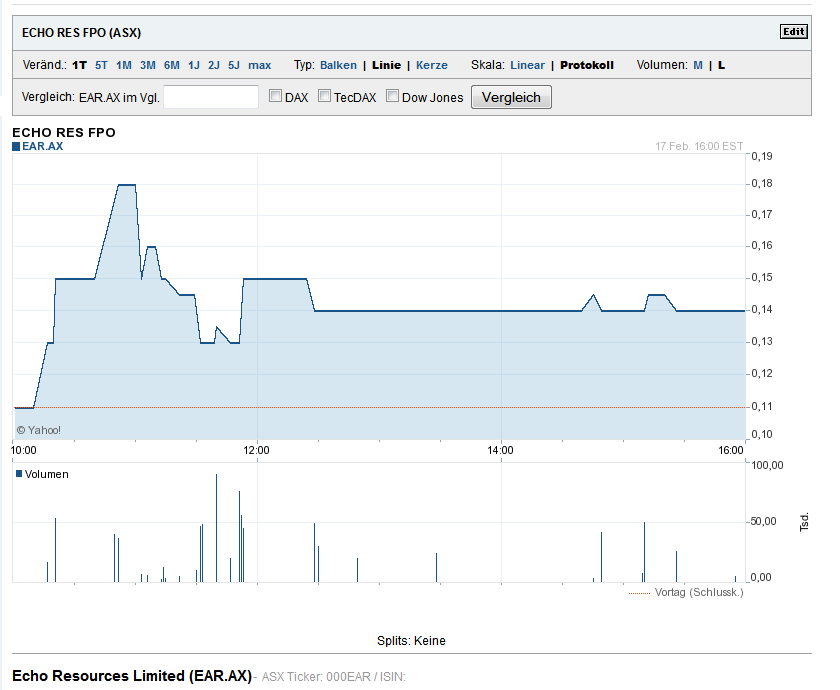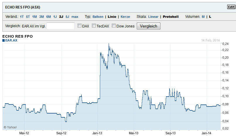 Also kein Führungswechsel. Jetzt aber bitte mal Gas geben und neben tollen Bohrergebnissen einen Plan erarbeiten, wie Echo Geld verdienen kann. Langsam muss es mal vorwärts gehen.