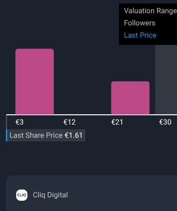 See what 74 others think this stock is worth: Angehängte Grafik (aus: Cliq Digital (DB:CLIQ) - Stock Analysis - Simply Wall St). Follow their fair value or set your own to get alerts.