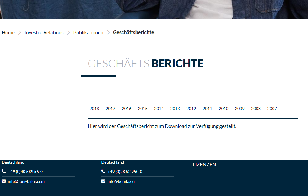 Firefox Bildschirmfoto: https://ir.tom-tailor-group.com/websites/...span_-berichte_span_.html