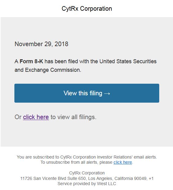 eigentlich eine offizielle PR, dass die NASDAQ Cytrx angeschrieben hat bezüglich Delisting?