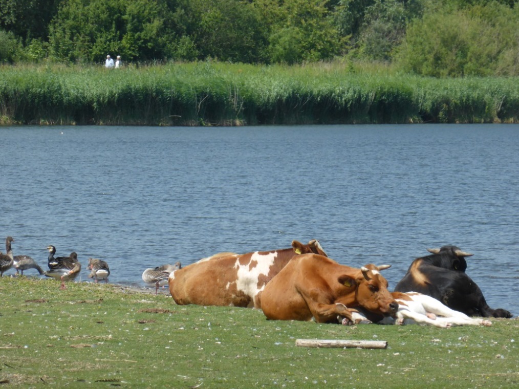 Unterwegs haben wir auch wieder das FFH Gebeit mit den Graugänsen angefahren. Junge sind nicht mehr zu erkennen. Aber es sind halt viele dazwischen, die sich ihre letzten Küken Daunen zupfen. Also alles in Ordnung. Inzwischen dürfen auch die Kühe wieder auf die Weide.