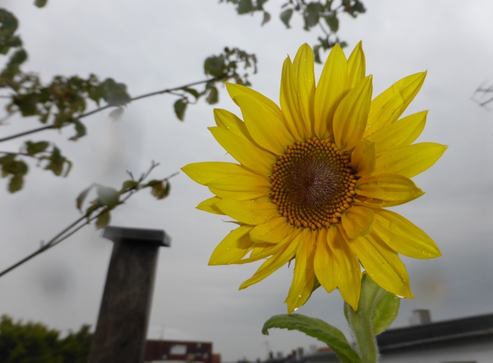 Als ich gestern Abend die schöne Sonnenblume von Kryptomane gesehen habe, dachte ich, ist heute Sonnenblumenaufgehtag? Auf meiner Terrasse hat gestern auch die eine Sonnenblume ihr helles gelbes Licht in den grauen Abendhimmel gestrahlt und den heutigen Sonnentag angekündigt. Hatte also den gleichen Gedanken mit dem Bild ;-)