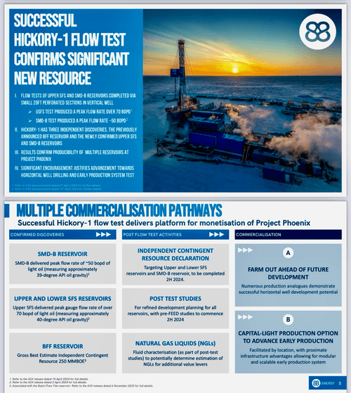 highlighting our successful flow test at Hickory-1 discovery well