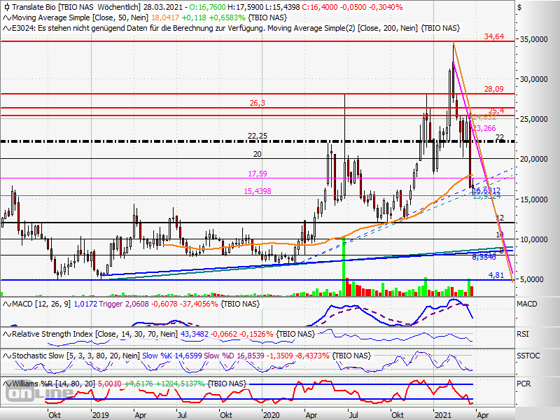 MACD weiter negativ, aber überverkauft. Uptrend seit März 2020 knapp gebrochen, hab ihn aber gestrichelt eingezeichnet gelassen. Wochentief 15.44, Wochenhoch 17.59 = gute Orientierung für nächste Woche, auch die SMA50 mit 18.04. Überschreiten dieser Kurse könnte ein Anzeichen für eine Trendwende sein.