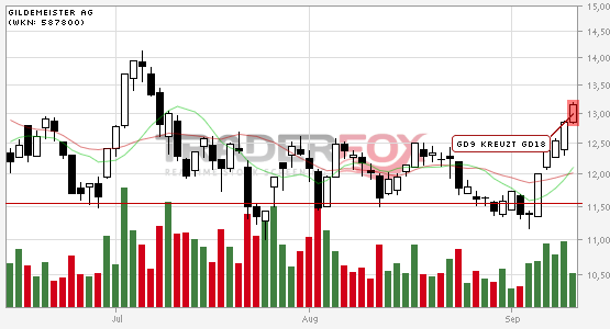 Relativ wenig Bewegung gab es in den letzten Wochen in der Gildemeister Aktie, was angesichts allgemein steigender Märkte per se schon zur Vorsicht mahnt. Dies wird durch den seit April laufenden Abwärtstrend eher noch bestätigt, auch wenn sich die Kurse zuletzt oberhalb von 11,48 Euro zumindest etwas stabilisieren konnten