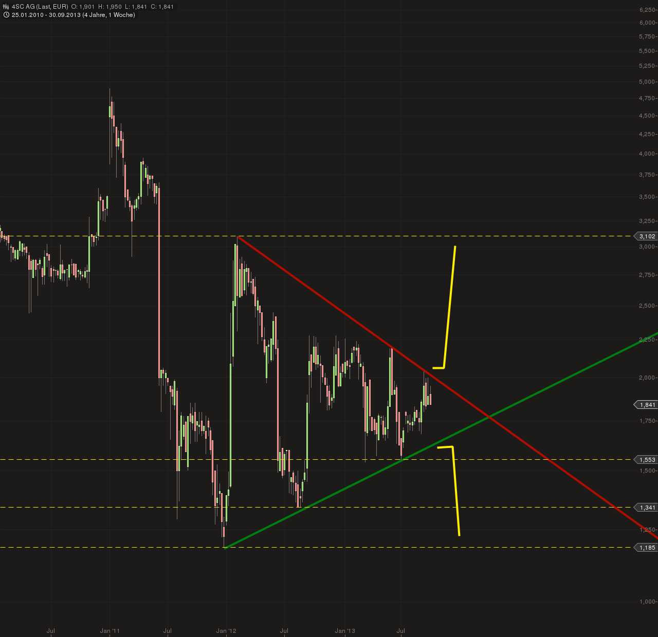 Jetzt geh ich nicht mehr rein. Die 4SC ist mir derzeit zu riskant. Eine KE kann wieder kommen wenn die keinen Investor finden. Finanziert bis ENde 2014 ist nix.