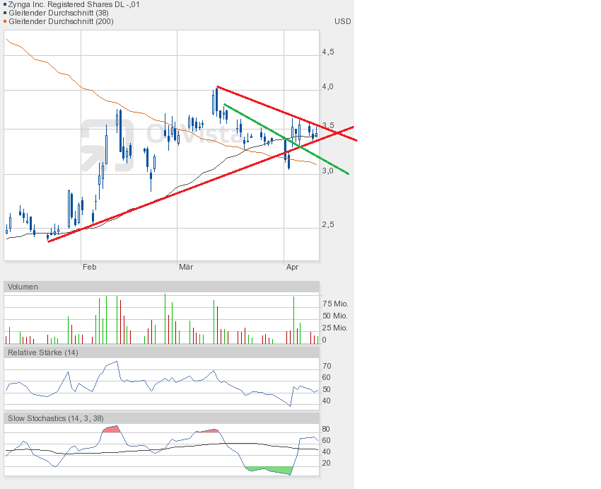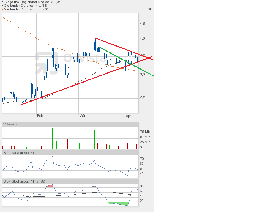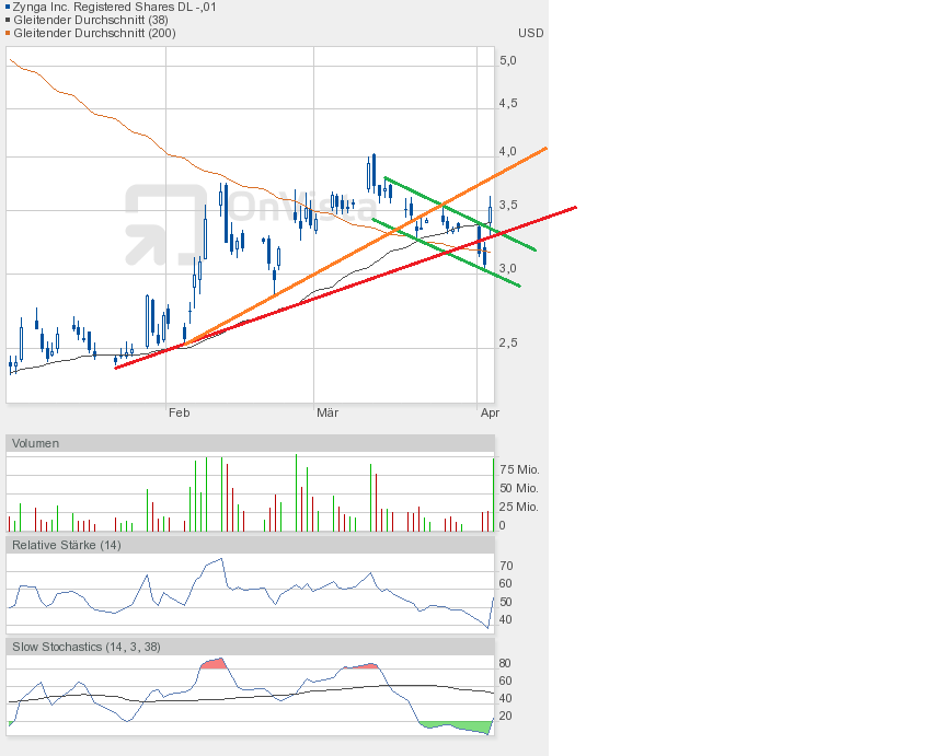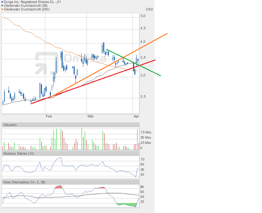 Das Tagestief von 3,30$ war ein Test der roten Aufwärtstrendlinie, danach ging es wieder schnell über 3,40$.