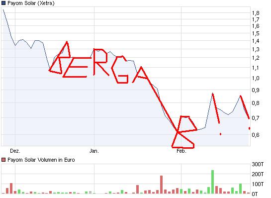 "In seiner aktuellen Analyse für Warburg Research setzt Stephan Wulf die Aktie des deutschen Systemanbieters von Solar-Anlagen Payom Solar (ISIN DE000A0B9AH9) zurück auf "Halten". Auch das Kursziel hat der Analyst heute dramatisch von 7,60 Euro auf 1,10 Euro gesenkt. Derzeit rangiert die Aktie bei einem Wert von 0,64 Euro. Ein Spiegel für den weltweiten Einbruch in der Solarbranche, unter dem auch Payom Solar zu leiden hat."