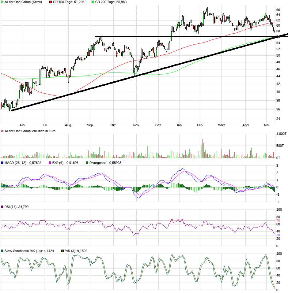 vom chart her interessant ... im 56 er Bereich die GD200, unfähr eine Seitwärtsunterstützung und die indikatoren schon recht weit unten ... ich überlege