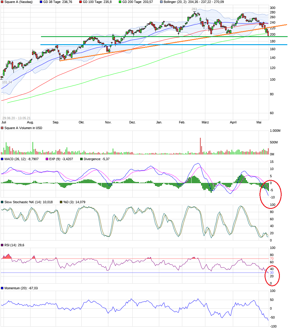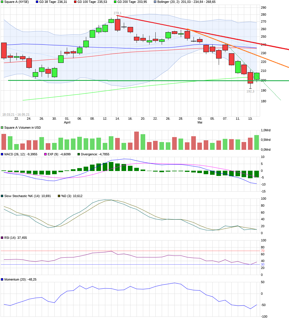 Die 200$ Marke ist natürlich jetzt ein extremer Widerstand, aber bei Techwerten wie Square ist das nix.