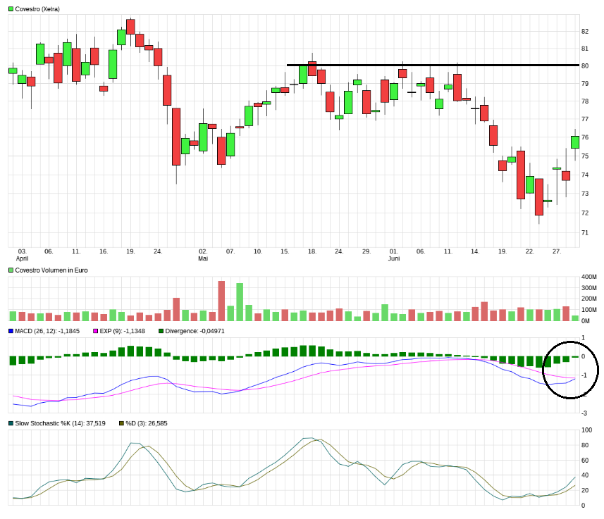 Ich bleibe weiterhin für RI optimistisch und mein Anteil im wiki ist ja immer noch groß dennoch sehe ich bei Covestro durch die sehr günstige Bewertung und der Fantasie der Übernahmen seitens Covestro zur Zeit mehr Potential. Zudem sehe ich die charttechnische Lage bei Covestro als sehr aussichtsreich an auch wenn noch alle Indikatoren im negativem Verlauf sind. Jedoch befindet sich die Aktie in einer Art Versuch einen Boden zu bilden und das dürfte in den kommenden Wochen/Monate die Indikatoren auch zum drehen bringen. Dieses aktuelle Kursniveau sehe ich als sehr attraktiv an für den mittel bis langfristigen Investor.