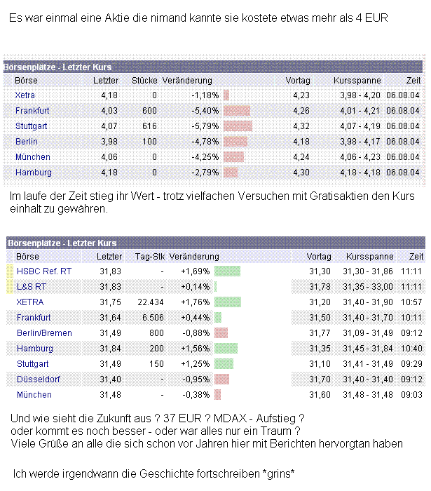 Wollen wir hoffen, dass das Managment, die doch sehr hohen Hoffnungen, die in den aktuellen Kursen stecken, auch wirklich erfüllen kann!