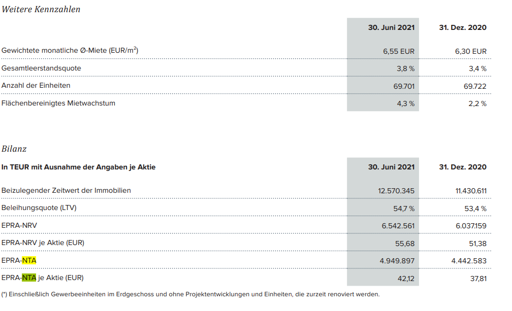 zum Stichtag 31. Dez. 2020 bei 23,12 Euro (NDV EPRA-NRV je Aktie voll verwässert).
