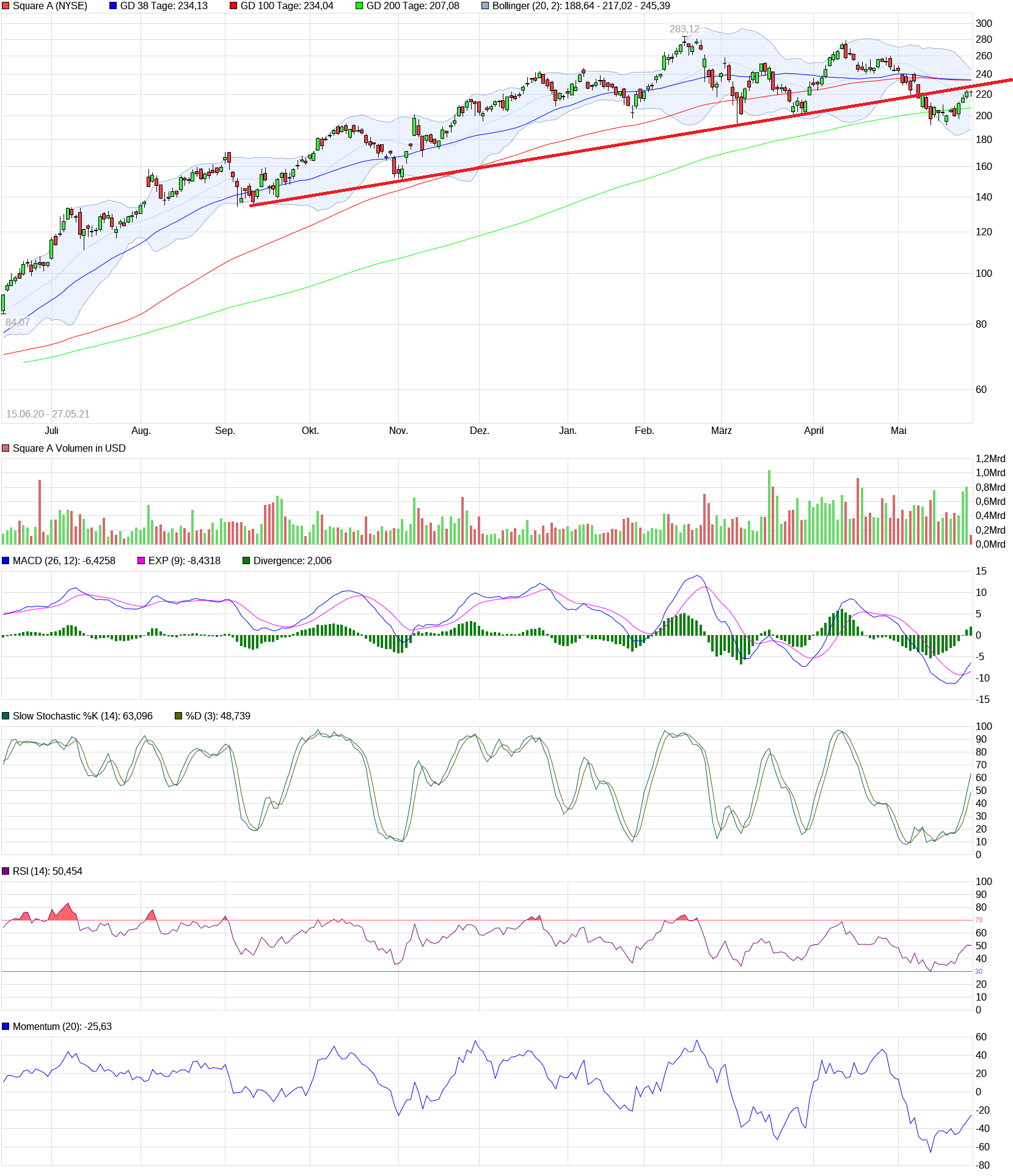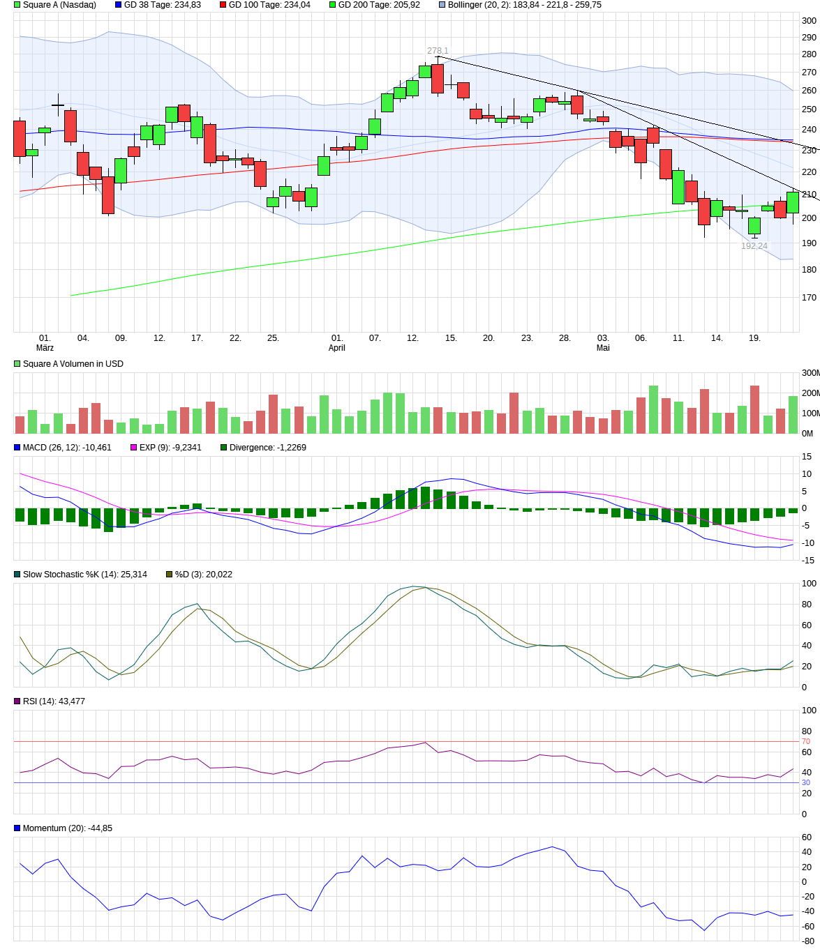 hatte ich mir tatsächlich neulich auch überlegt, dass ca. bei 230 $ Schluss ist, da man dann am Support (jetzt Widerstand) evtl. unten abprallen könnte und dann wieder dreht.