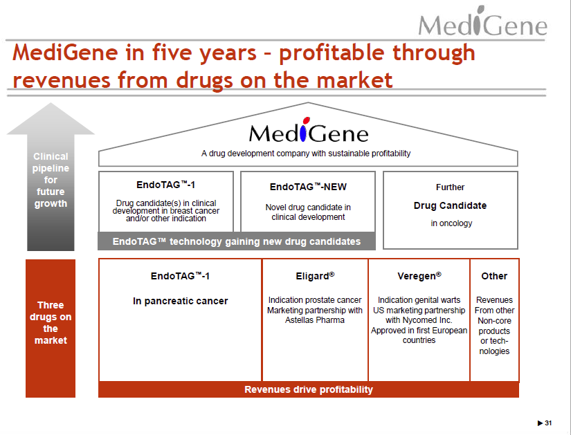 Medigene setzt seine Strategie, zahlreiche Partnerschaften zur Vermarktung von Veregen in diversen Ländern abzuschließen, also konsequent fort. Im vergangenen Jahr konnten bereits Partner für China und Südkorea sowie Israel, Griechenland und Zypern gewonnen werden. Die steigende Zahl an Partnerschaften dürfte auch den Veregen-Umsatz in den kommenden Monaten deutlich ankurbeln.