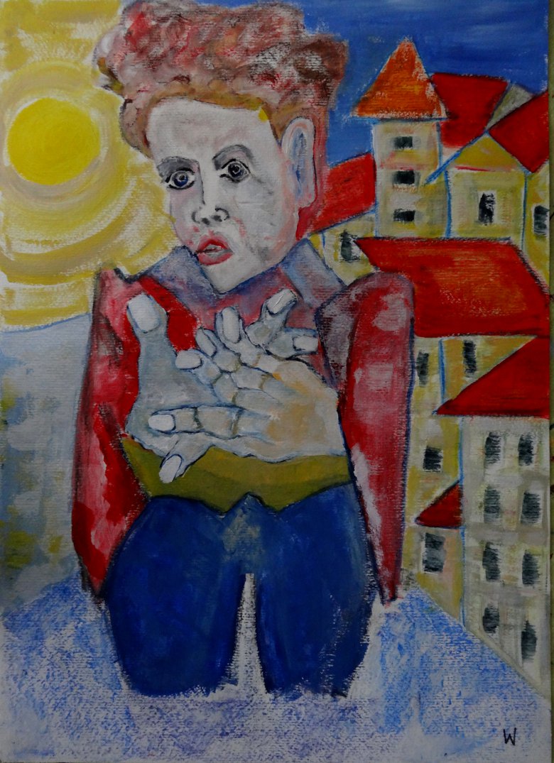 Frierender Obdachloser, in leicht abgewandelter Form eines Suprematismus, gemalt!