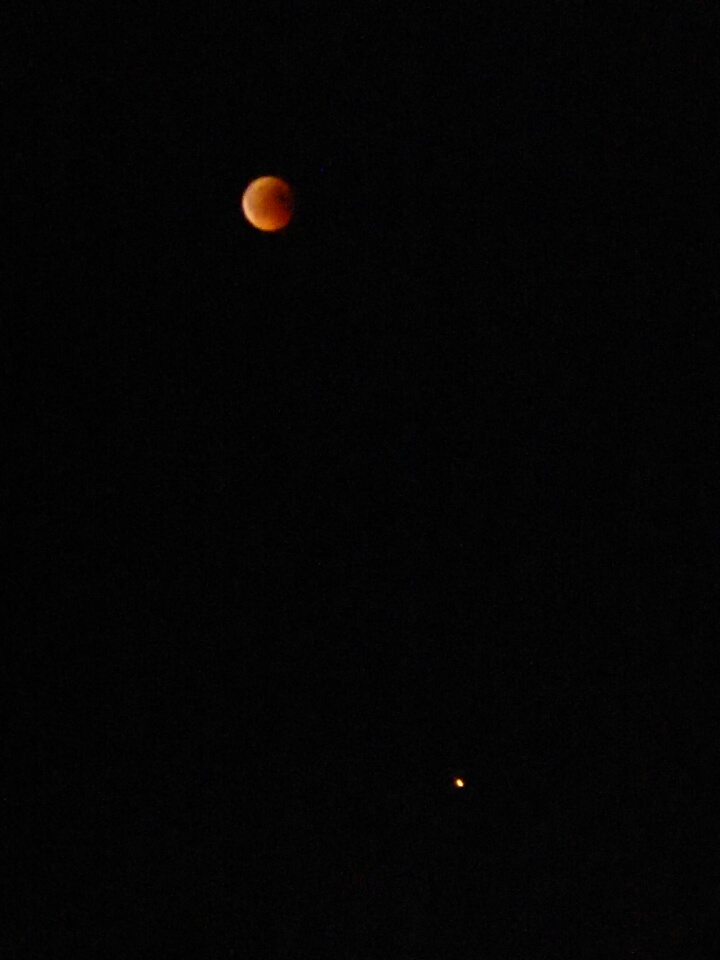 Ich fand auch, dass der blutige Mond spät kam, hier bei uns sehr entfernt zu sehen war und nicht gut zu fotografiren, als alles am Abklingen war, war er näher gekommen und wolkenfrei sichtbar für ein paar weniger spektakuläre Bilder