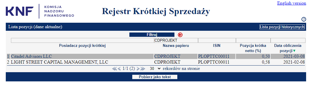 Bei CDPR --> Fehlanzeige, geht weiter down. Das ist übel und ein ganz schlechtes Zeichen.