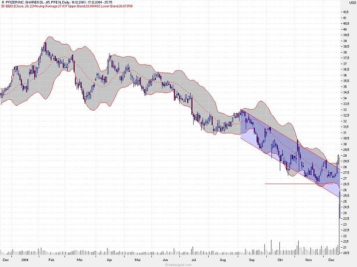 als Unsicherheit). Schlimmer als mit einem Celebrex-Rückzug kann die Chose aber nicht enden. Dann wäre 23,95 USD der Einstiegskurs (abzgl. "Panikabschlag" von bis zu weiteren 10 %). Womöglich STEIGT Pfizer aber sogar nach dem Rückzug, weil dann die Unsicherheit aus dem Markt raus ist: Wenn die News durch ist, weiß jeder, dass es nicht weiter abwärts gehen kann - und kauft.
