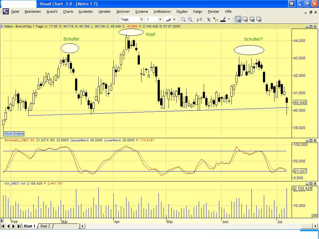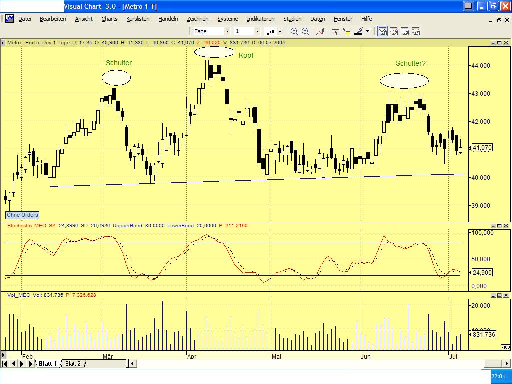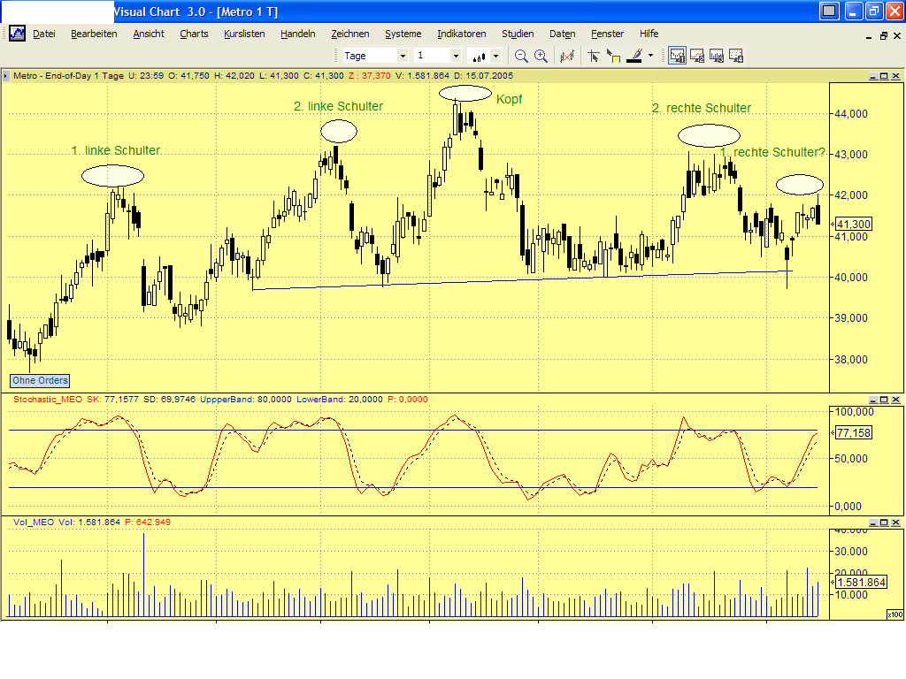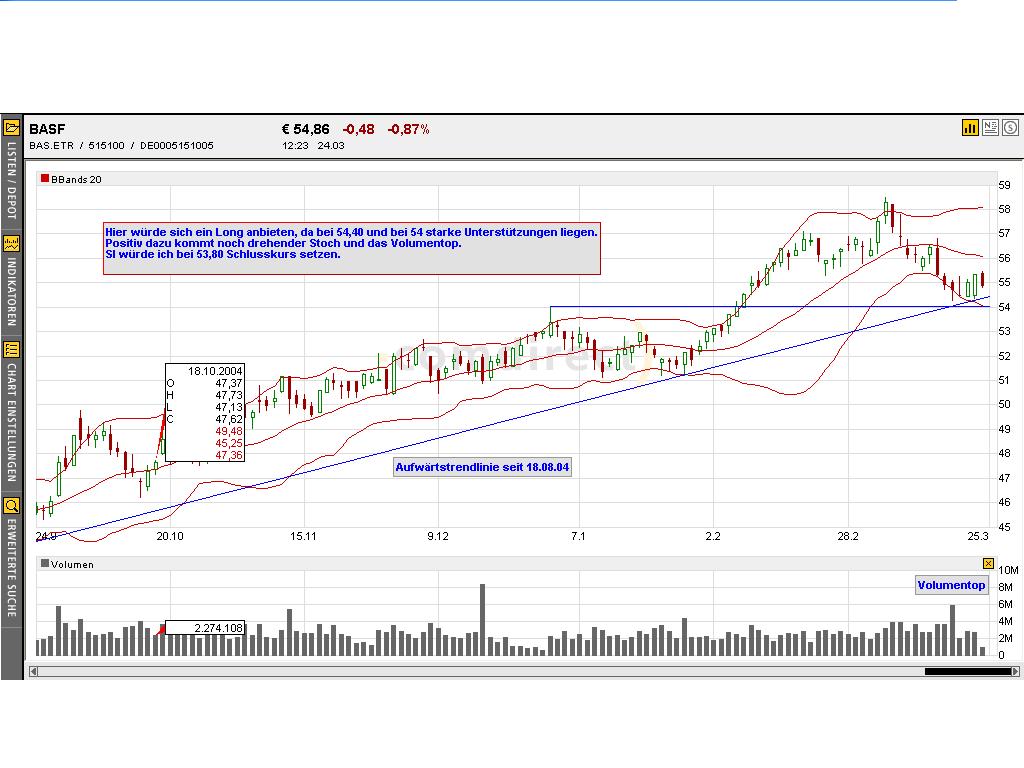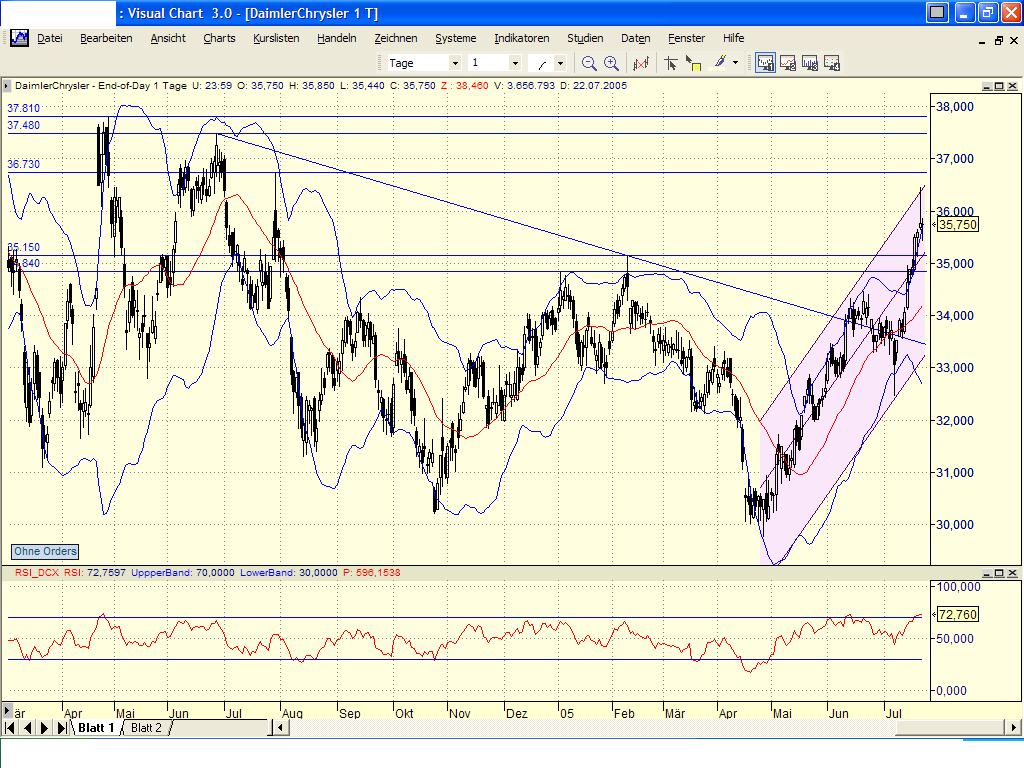 Dazu wurde ein schöner Shooting Star ausgebildet, der einzige übrigens an diesem Tag aller 30 Daxwerte.