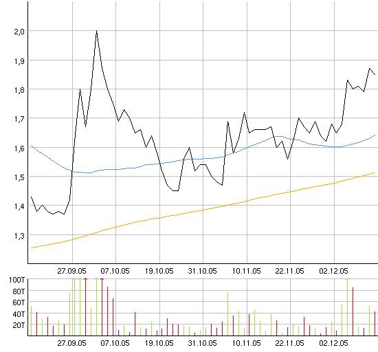 Kurs aktuell + 5% auf 2.05 Dollar; die Frag von aoffset hat sich damit zunächst mal erübrigt. 8)