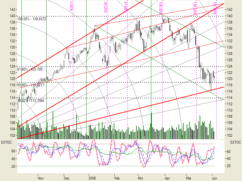 trotz dem heutigen Feiertag doch relativ gute Umsätze. Mal schauen ob sie drehen kann - dafür ist es aber noch zufrüh wenngleich ein break des Aufwärtstrend´s bestehend seit Mrz 03 schlimme Folgen nach sich ziehen kann/würde. Das gilt natürl. auch für den Dax.