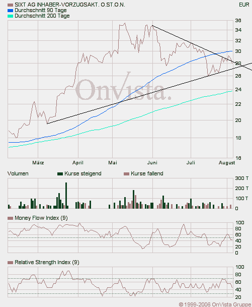 die Stämme. Die Vorzüge sind jetzt deutlich im Minus. Der Kurs ist 26,75 Euro, also 1,33 % im Minus bei Bid und Ask 26,60 zu 26,93. qo_Op, es ist nett, dass Du Dich entschuldigst. Wie gesagt: ich gönne es Dir, dass Du mittelfristig Gewinne mit Sixt machst. Nur sollte man mit einem Neueinstieg vielleicht nicht gerade heute liebäugeln.