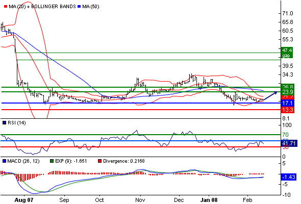 Erst ein nachhaltiger Anstieg über den Widerstandsbereich bei 31,21 - 34,91 Euro würde das angeschlagene Chartbild wieder deutlich aufhellen und eine Kurserholung bis 47,35 - 52,00 Euro ermöglichen.