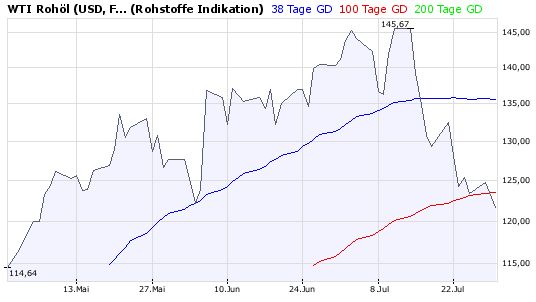 In den vergangenen Tagen ist der Ölpreis allerdings deutlich gesunken. Für die Sorte Light Sweet Crude wurden am Mittwoch rund 122 USD pro Barrel gezahlt. Der Ölpreis notiert damit rund 15% unter seinem Rekordhoch von Mitte des Monats.